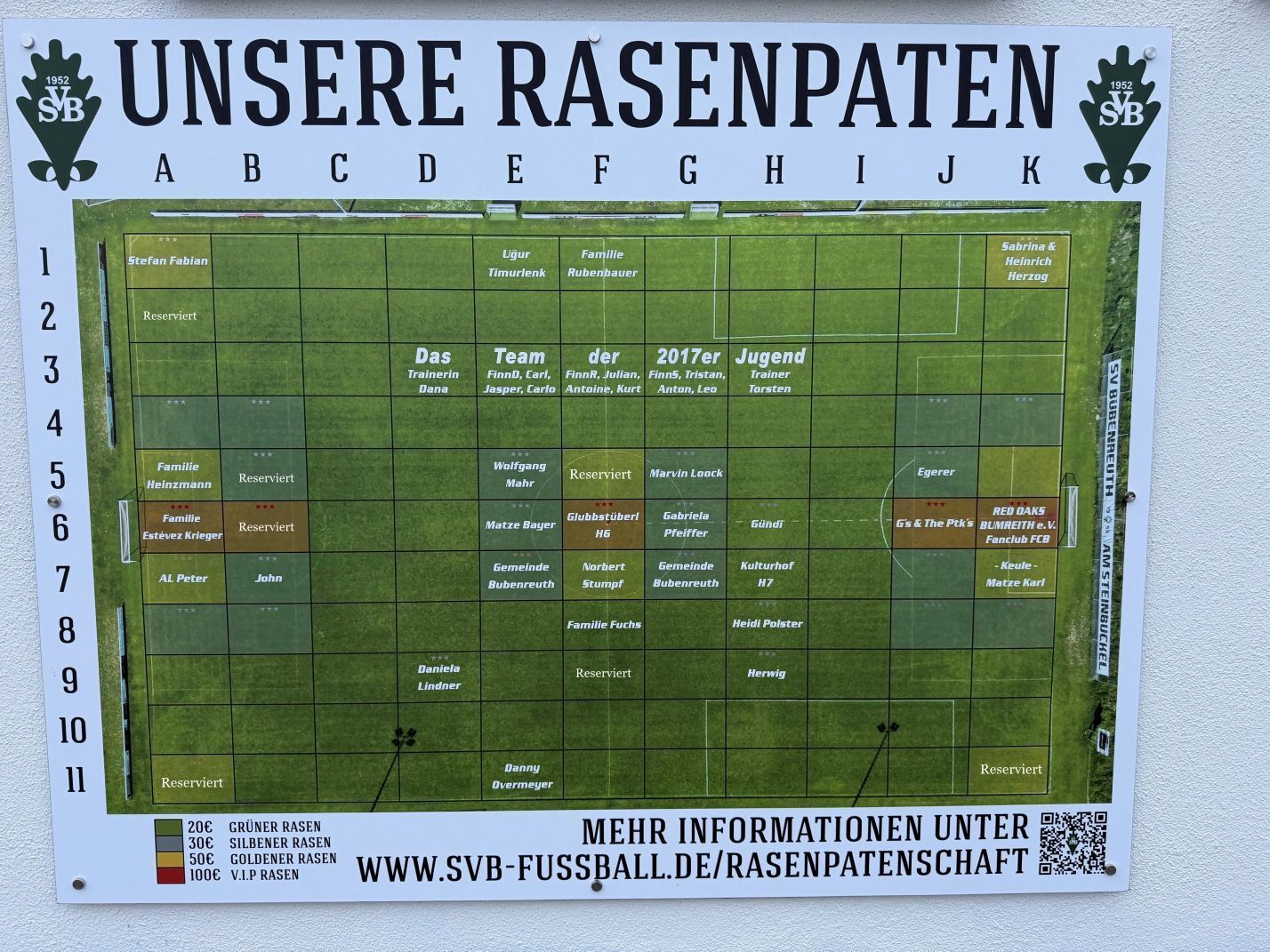 WIR, der SV Bubenreuth suchen Rasenpaten für unseren Fußballplatz.